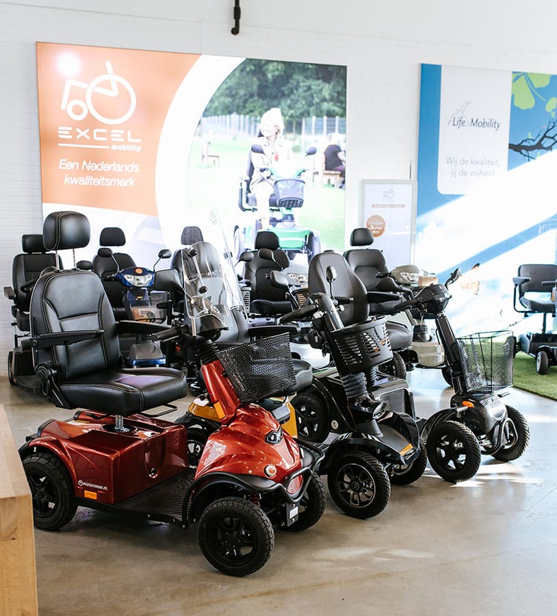 In onze showroom vindt u niet alleen scootmobielen, maar ook een uitgebreid assortiment rollators, rolstoelen, handbikes en rolstoelmotortjes. Zo kunt u alles rustig bekijken, uitproberen en vergelijken.