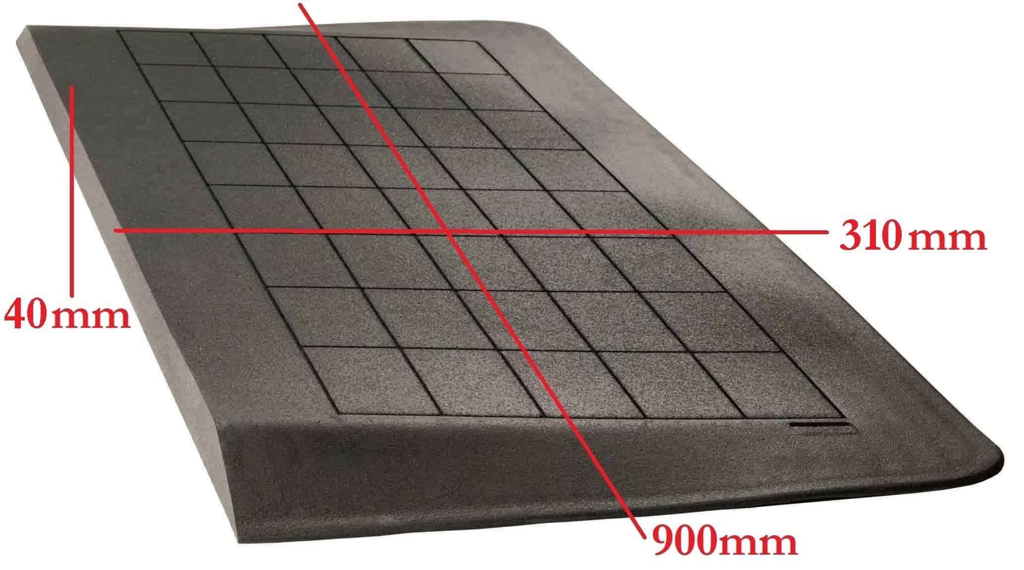 Rubber drempelhulp met schuine zijvlakken, in het zwart.