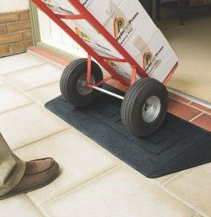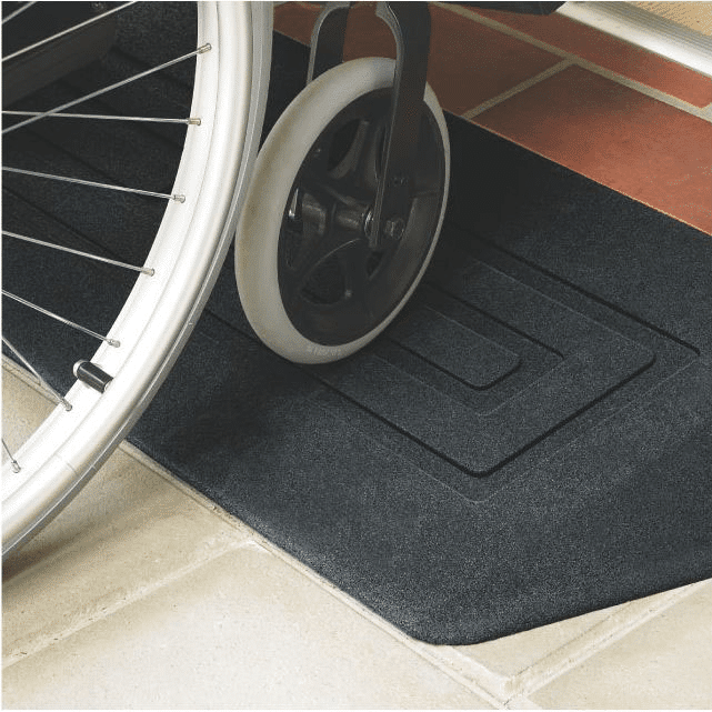 Rubber drempelhulp met schuine zijvlakken, in het zwart.