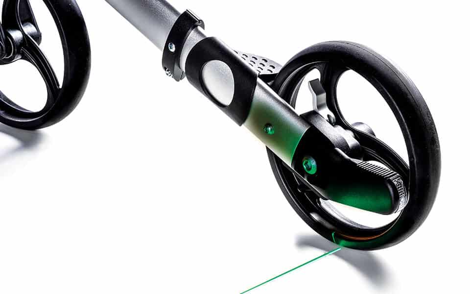 De laserlijn op de Gemino 30 Parkinson Comfort zorgt ervoor dat ‘bevriezing’ tijdens het lopen wordt opgeheven. Om de laserlijn te activeren drukt u op de groene knop aan de zijkant van de rem. Zodra de laserlijn geactiveerd is moet u zich concentreren op de lijn op de grond. Dit maakt het makkerlijker om over de ‘bevriezing’ heen te stappen, waardoor u weer verder kunt lopen.