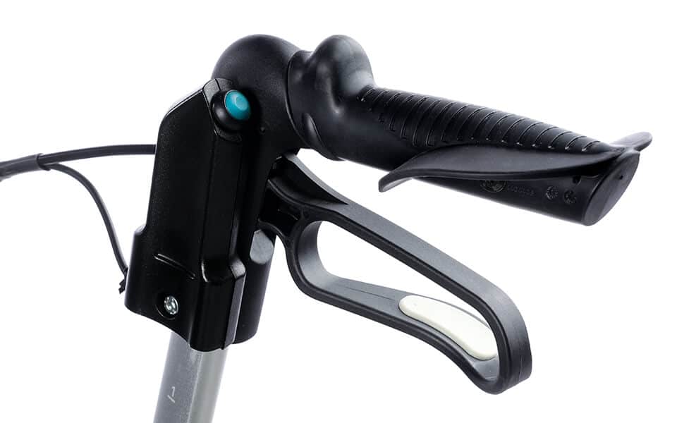Door de omgekeerde remfunctie stopt de rollator onmiddelijk wanneer de rem wordt losgelaten. Dit zorgt voor extra veiligheid bij bijvoorbeeld ‘bevriezing’ tijdens het lopen, dit voelt alsof uw voeten worden vastgelijmd aan de grond. De omgekeerde remfunctie zorgt dat de rollator niet verder rijdt als u de controle verliest.