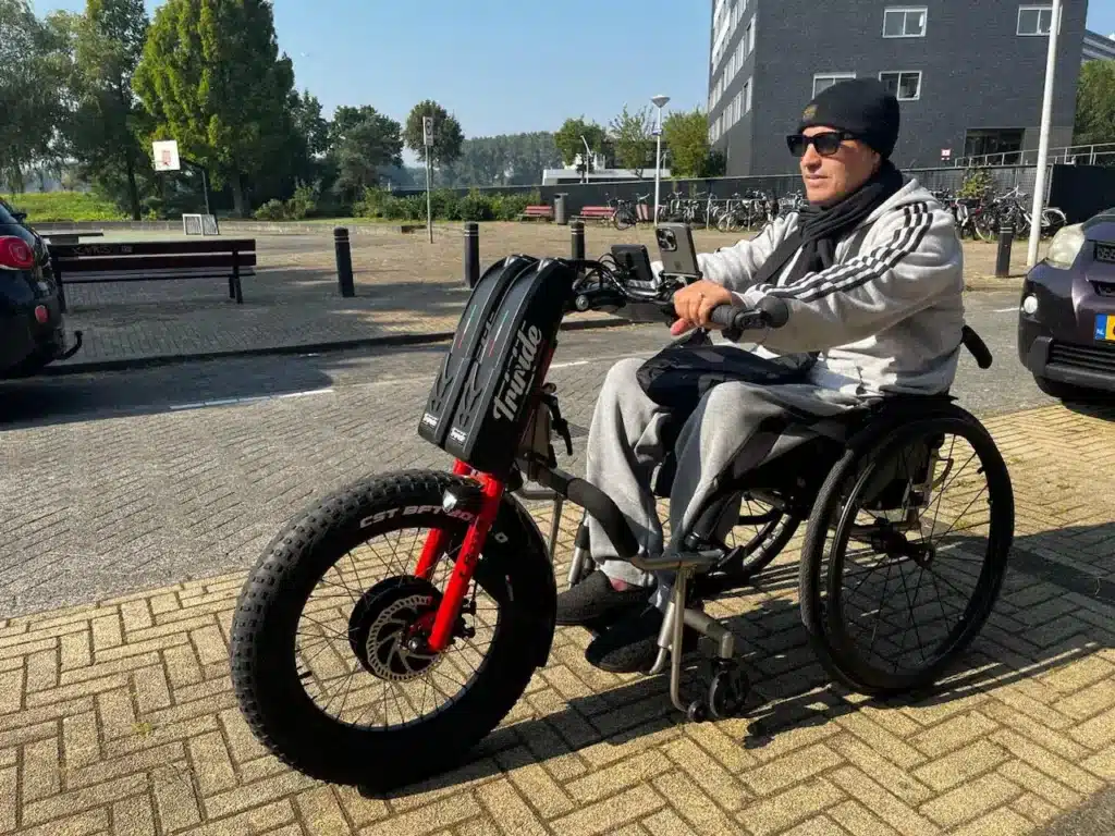 Veel van onze klanten geven, zoals Jamal, aan dat ze een hulpmiddel willen dat niet enkel bij hun behoefte hoort qua mobiliteit maar ook iets dat bij hun ‘looks’ past. Iets waar ze zich zelfverzekerd bij voelen. Het is inderdaad belangrijk om niet alleen naar de functionele behoeften te kijken, maar ook naar hoe iemand zich voelt bij het gebruik van een hulpmiddel en hoe het er esthetisch gezien uitziet. Het is geweldig om te zien dat Jamal voor de Triride T-Rocks 20” heeft gekozen, niet alleen vanwege de indrukwekkende prestaties, maar ook omdat het een stoer en strak design heeft. Dit zorgt ervoor dat hij zich goed voelt tijdens het rijden en dat de handbike ook visueel aantrekkelijk is. Zo kan hij volop genieten van zijn ritten, zowel qua comfort als qua stijl!