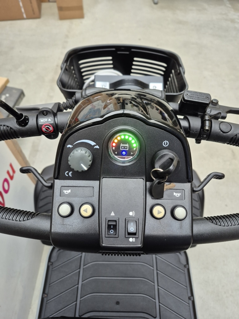 De bediening is eenvoudig. Met deze scootmobiel kunt u prachtige ritten maken. Geleverd met 76Ah accu’s voor een bereik tot 40 km.