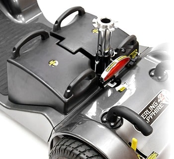Het bedieningspaneel is eenvoudig en overzichtelijk te noemen. Op het bedieningspaneel vindt u de accu indicatie, snelheid regelaar, laadplug, contactslot en schakelaars voor verlichtingen en claxon. Belangrijk is om te weten dat het laden van de Sterling Sapphire gaat via het bedieningspaneel. De gasbediening gaat middels de bekende wig/wag hendel, dit betekent dat de scootmobiel zowel met links als rechts te bedienen is.
