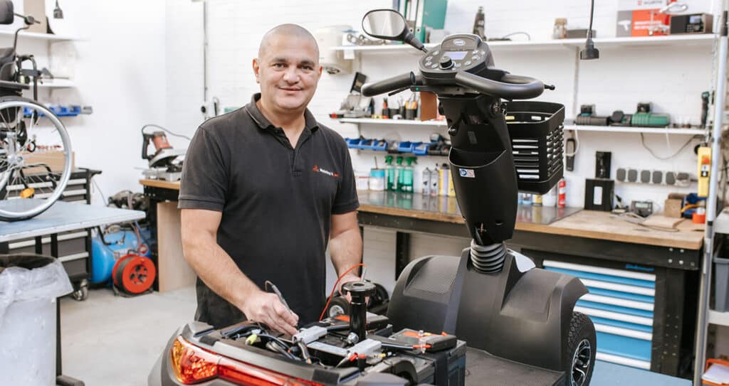 De mooie showroom van 500m2 heeft een unieke uitstraling en geeft klanten de gelegenheid om alles indoor uit te proberen. Even verder in het pand vind je onze moderne werkplaats. In de werkplaats worden nieuwe producten opgebouwd, tal van aanpassingen gemaakt en service gedaan aan bestaande producten. We hebben een ervaren, deskundig en betrokken team van monteurs, die graag meedenken met de klant. Kortom, Mobility & you is een enthousiast en gemotiveerd team dat wel van een uitdaging houdt.