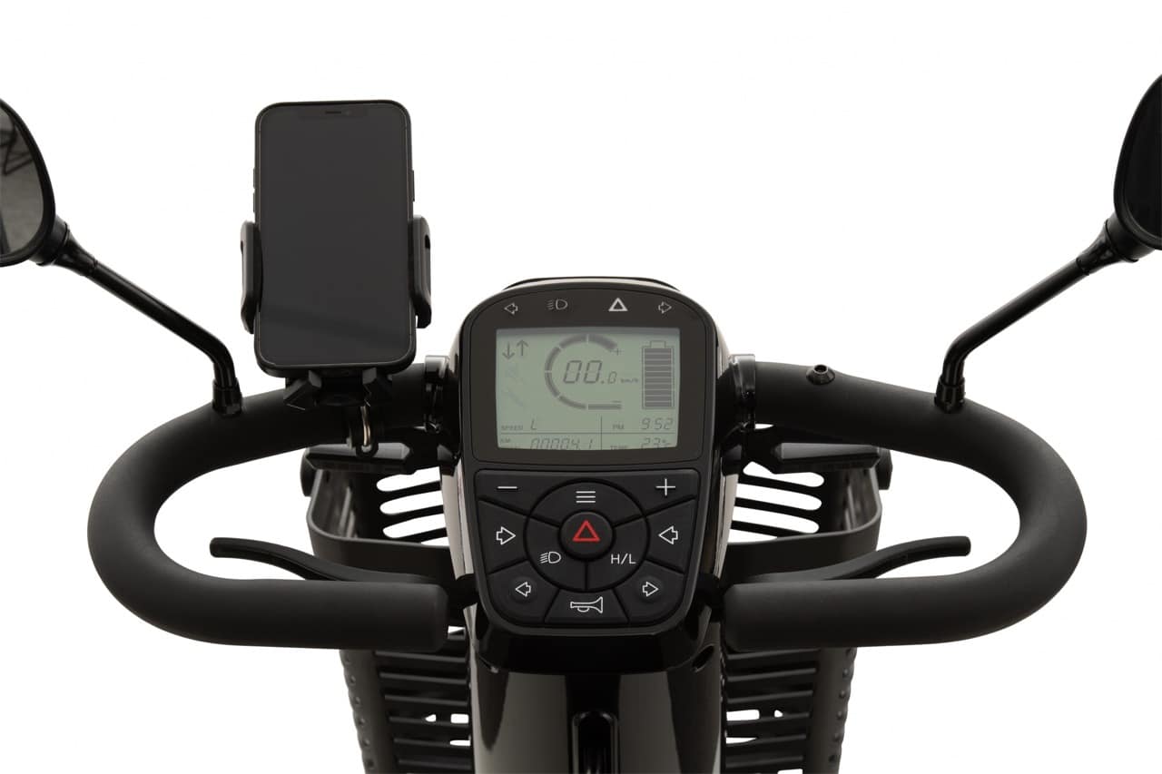Bij het ontwerp is goed nagedacht over alle veiligheidsaspecten rondom het rijden met een scootmobiel. Bijvoorbeeld door de stijlvol vormgegeven LED verlichting en het overzichtelijke en slim ingerichte bedieningspaneel.