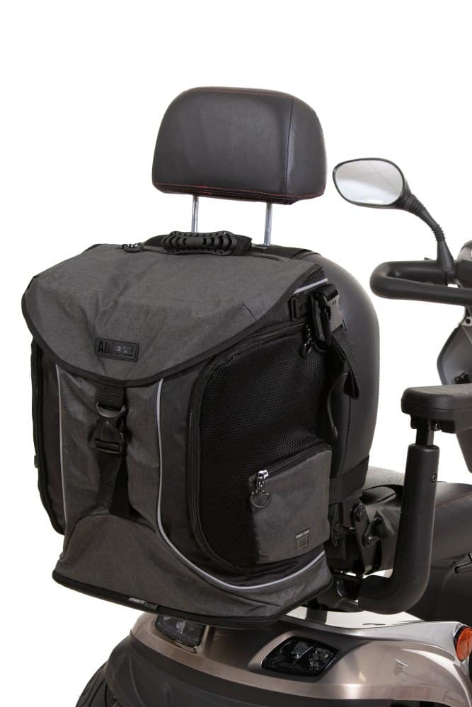 De tas is door de brede band goed te bevestigen over de rugleuning van een scootmobiel of door de 2 stevige hengsels aan de handvaten van een rolstoel. Verkrijgbaar in drie verschillende kleuren.