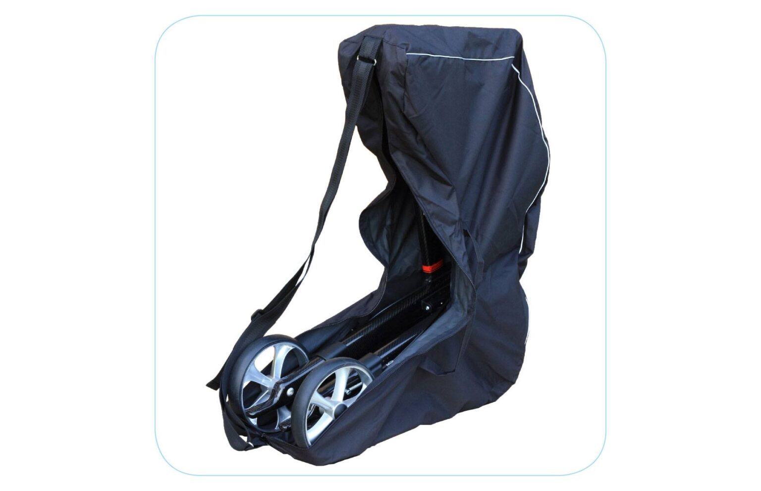 De rollator kan in de transporttas worden ingepakt om hem op reis mee te nemen. Met verstelbare schouderriem, handgrepen en reflectoren.