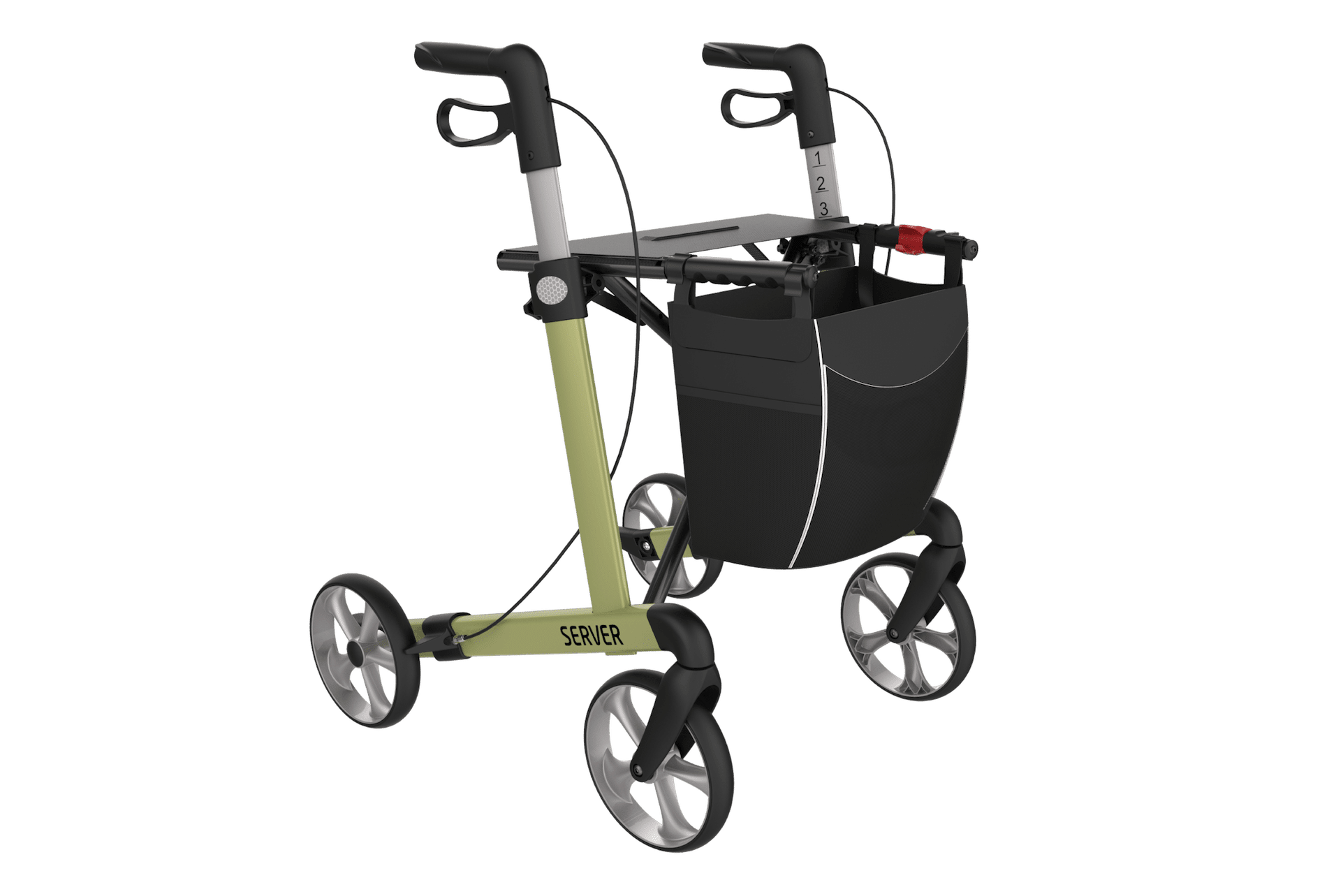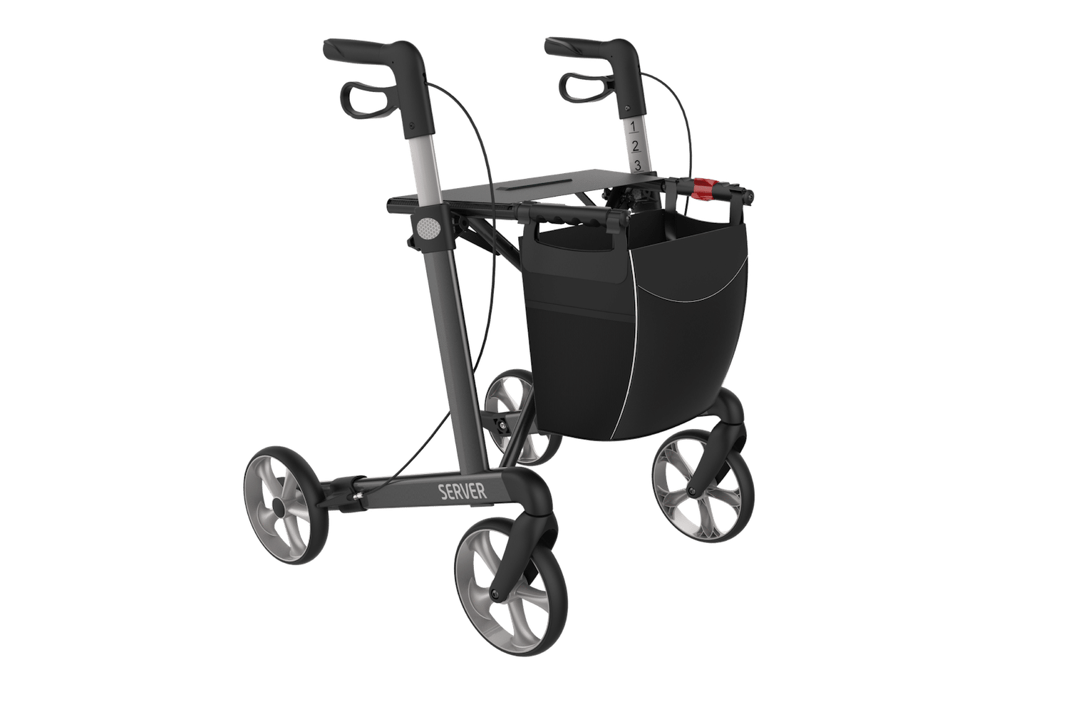 Alle modellen zijn eenvoudig in te klappen en blijven gesloten door een eenvoudig vergrendelingssysteem. Dit is tevens een ergonomisch gevormd handvat waarmee de Server rollator opgepakt kan worden. De remmen zijn zeer licht te bedienen en het frame is stabiel en duurzaam gemaakt. Verkrijgbaar in meerdere maten en zithoogtes. De Server Standaard en Server Up in de maat Large is leverbaar in maar liefst 11 kleuren.