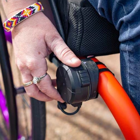 Een andere optie om de SmartDrive te bedienen is met de SwitchControl-drukknop. Met een druk op de knop kan de SmartDrive worden ingeschakeld voor een snelle energieboost of worden geactiveerd in de vergrendelde modus voor een constant vermogen over lange afstanden. Wanneer de motor is geactiveerd kan deze ook via de schakelaar worden uitgezet, waarna je stopt door op de hoepels af te remmen.