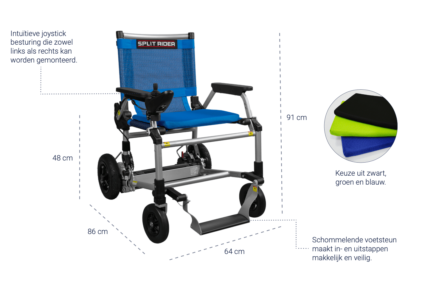 Vernieuwde versie van de SplitRider, nu nog lichter met het zwaarste deel slechts 8,6 kg! Dat is het laagste tilgewicht ter wereld voor een elektrische rolstoel. De SplitRider Ultra Light wordt standaard geleverd met matzwart frame en ook standaard de magneetkoppeling. Met de magneetkoppeling wordt het uit elkaar halen nog makkelijker. Eenvoud dient de mens.
