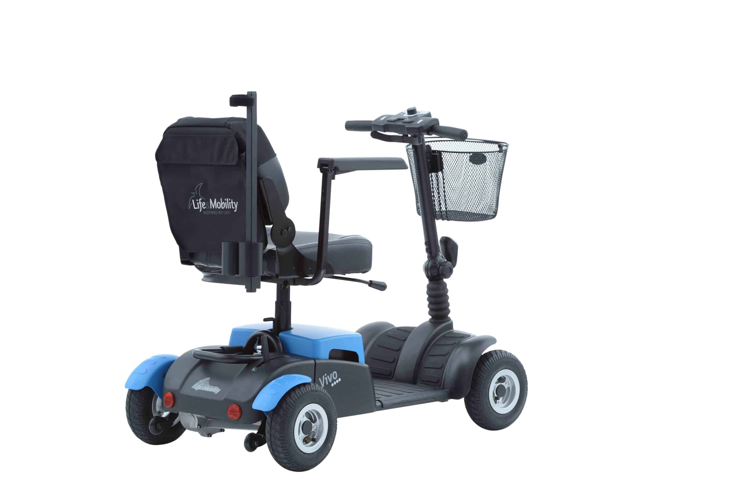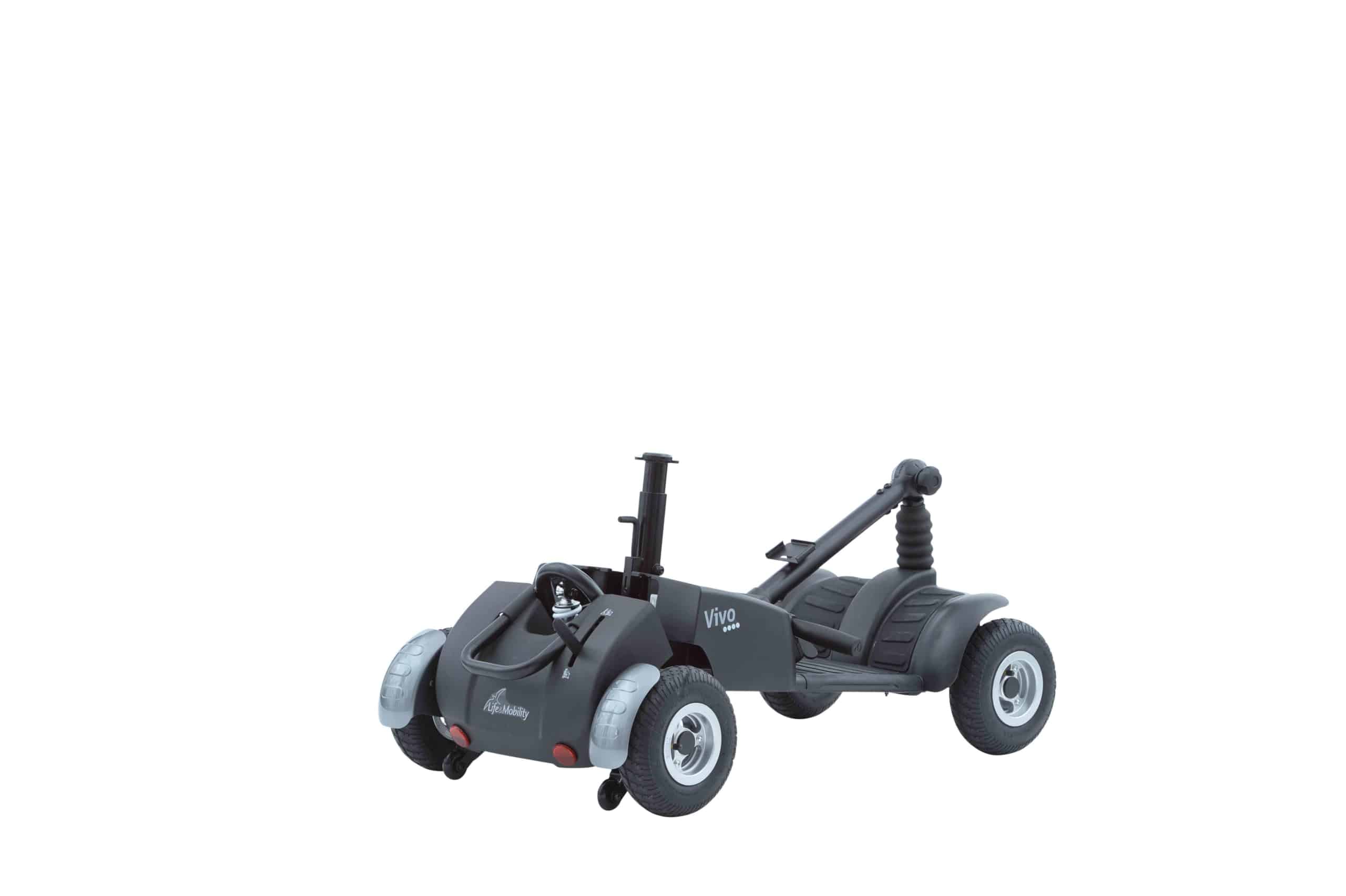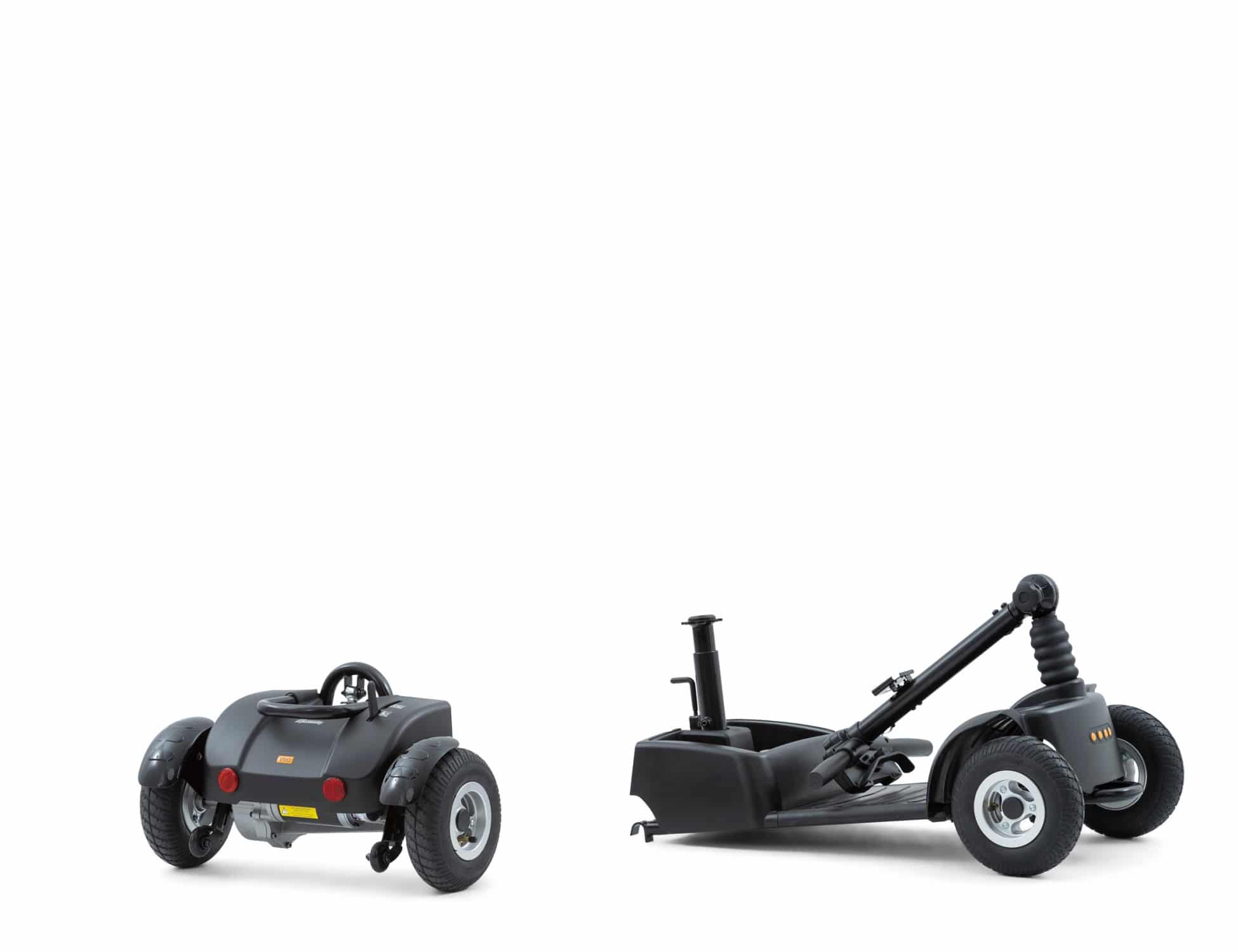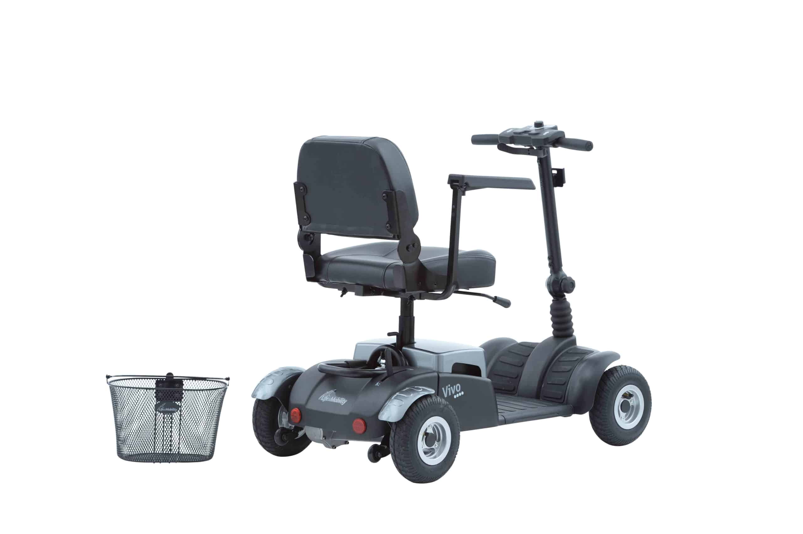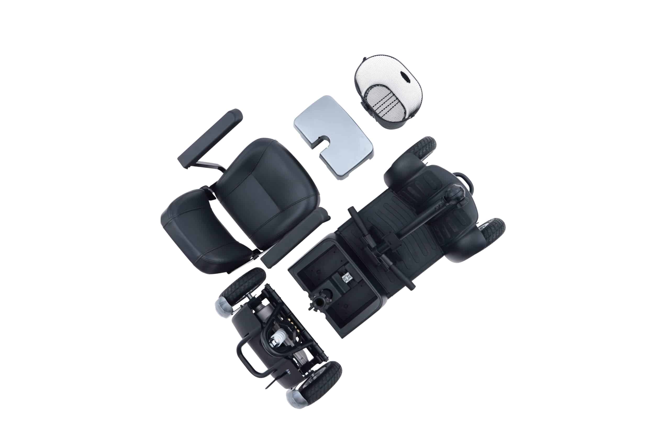 De demontage van de Vivo scootmobiel is zonder gebruik van gereedschap. De stoel en accubak tilt u omhoog. Het loskoppelen van de motor doet u via de hendel achter de stoelkolom. Zodra u de hendel omhoog tilt komt het motor gedeelte los. Het zwaarste gedeelte is het framedeel voor met een gewicht van 20,5 kg.
