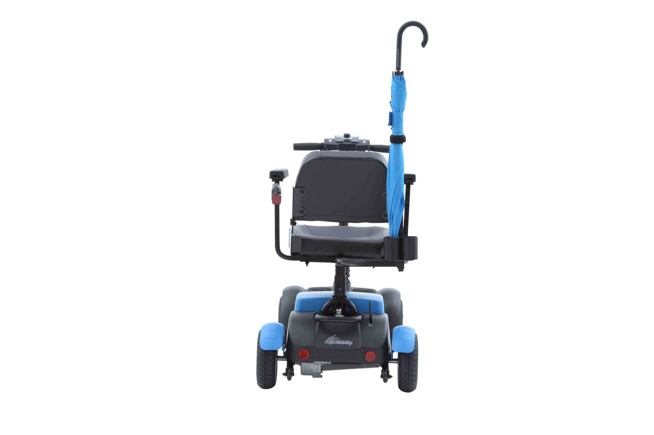 De enkele jaren geleden compleet vernieuwde Vivo opvouwbare scootmobiel is een uiterst comfortabele reisscooter met een maximum snelheid van 8 km/u. De 22Ah accu’s zijn goed voor een actieradius van zo’n 22 – 28 kilometer (afhankelijk van de omstandigheden). De stuurkolom is met een fijne vertanding af te stellen in de gewenste hoek, en ook de stoel kan in hoogte ingesteld worden.